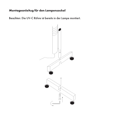 Montageanleitug für den Lampensockel Beachten: Die UV-C Röhre ist bereits in der Lampe montiert.