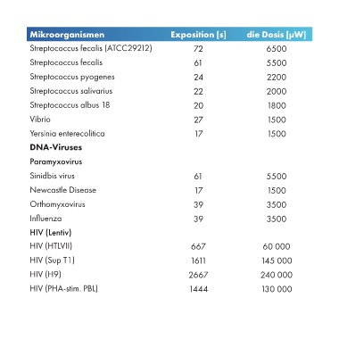 Mikroorganismen Exposition [s] die Dosis [µW]