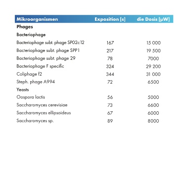 Mikroorganismen Exposition [s] die Dosis [µW]