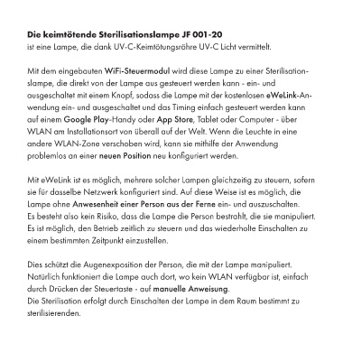Mit dem eingebauten WiFi-Steuermodul wird diese Lampe zu einer Sterilisation-