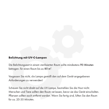 Menschen und Tiere sollten den Raum verlassen, bevor sie das Gerät einschalten.