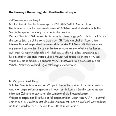 Stecken Sie die Sterilisationslampe in 220-230V/50Hz Netzsteckdose.